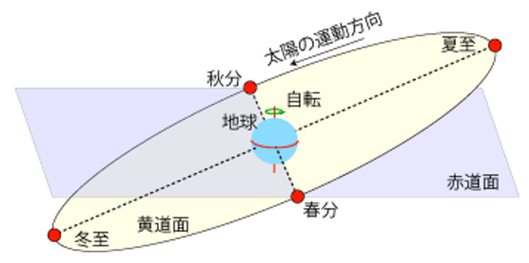 春分点:黄道が南から北へ交わる点で昇交点(しょうこうてん)といいます。