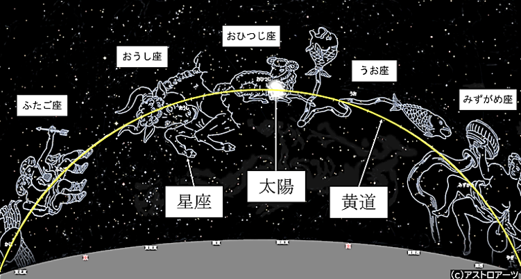 このため、占星術などで使われている十二星座は、各星座を黄道上に便宜上12等分して配置したものですので、天文学的な黄道十二星座と区別するために